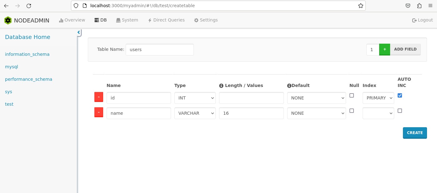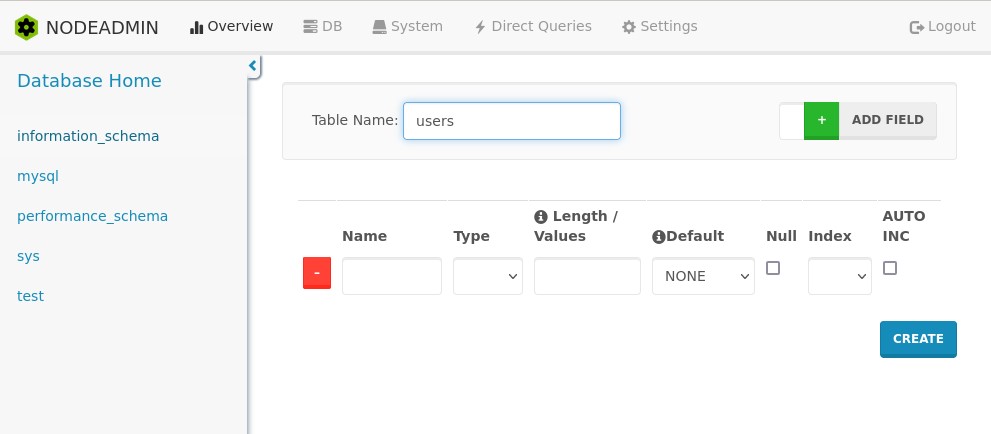 Теперь нам откроется окошко со структурой таблицы, в котором можно назначить имя и тип данных для полей: