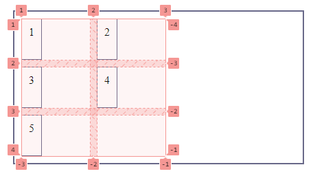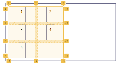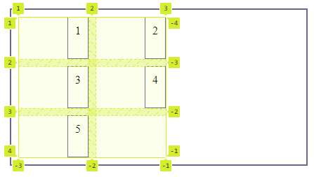 Направите мрежу која се састоји од пет елемената, распоређених у три реда. Извршите поравнавање елемената по хоризонталној оси.